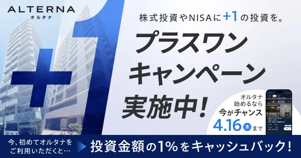 - オルタナでは現在、投資金額の1%がキャッシャバックされるキャンペーンを実地中(2026年4月時点)