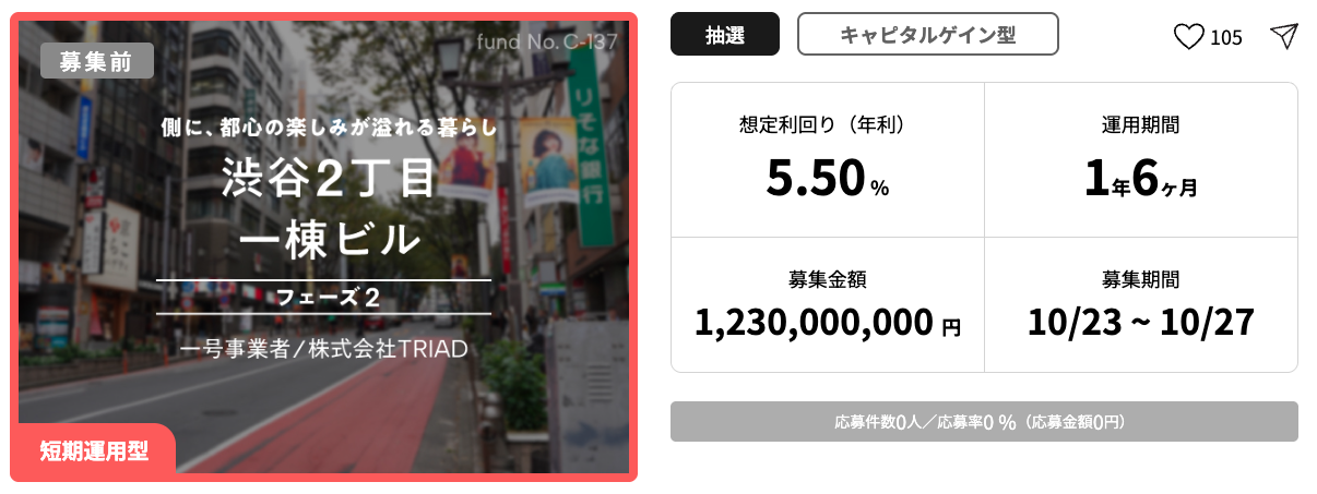 また、COZUCHIでは利回り5.5%のファンドが募集されます。