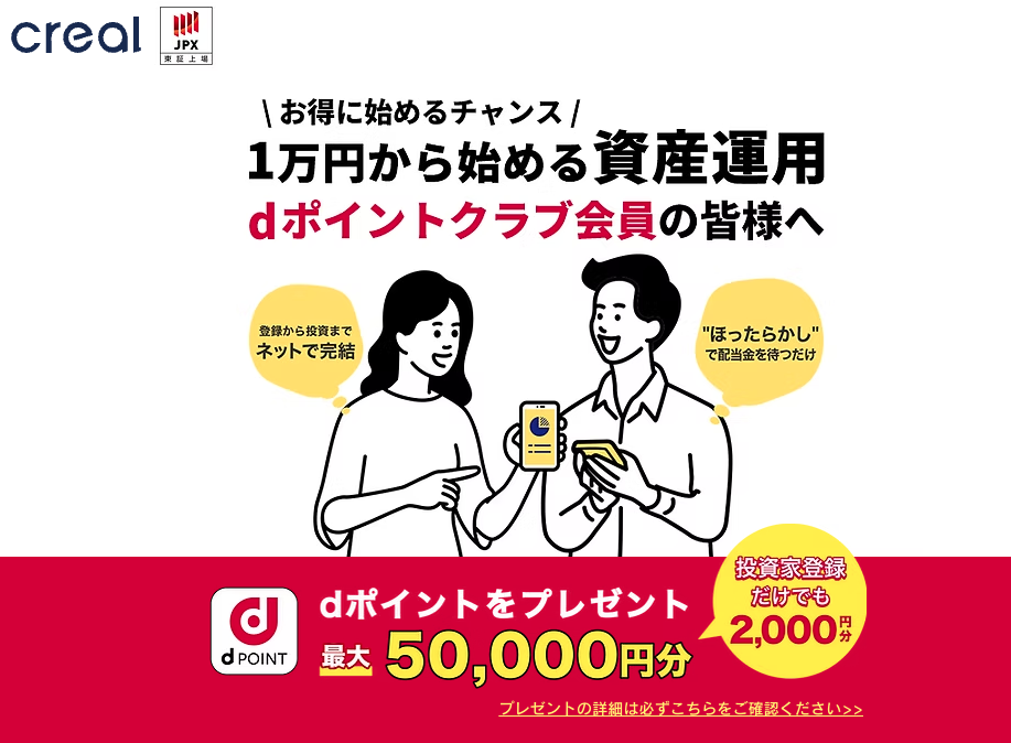 配布時期 | 2019年4月末日までにCREAL投資口座へ入金 |