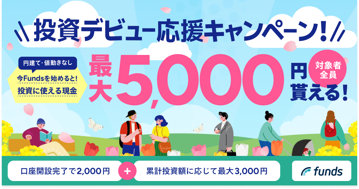 Fundsでは2026年4月時点で、投資デビュー応援キャンペーンを実施中です。