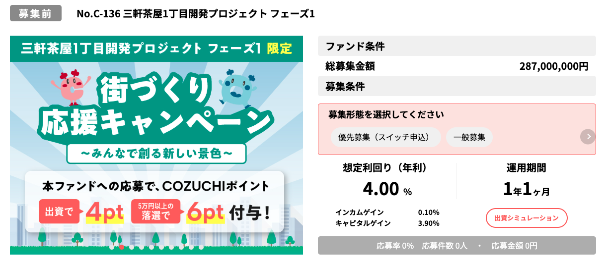 また、COZUCHIでは利回り4%の最新ファンドが2025年10月9日〜2025年10月16日に抽選式で募集されます。