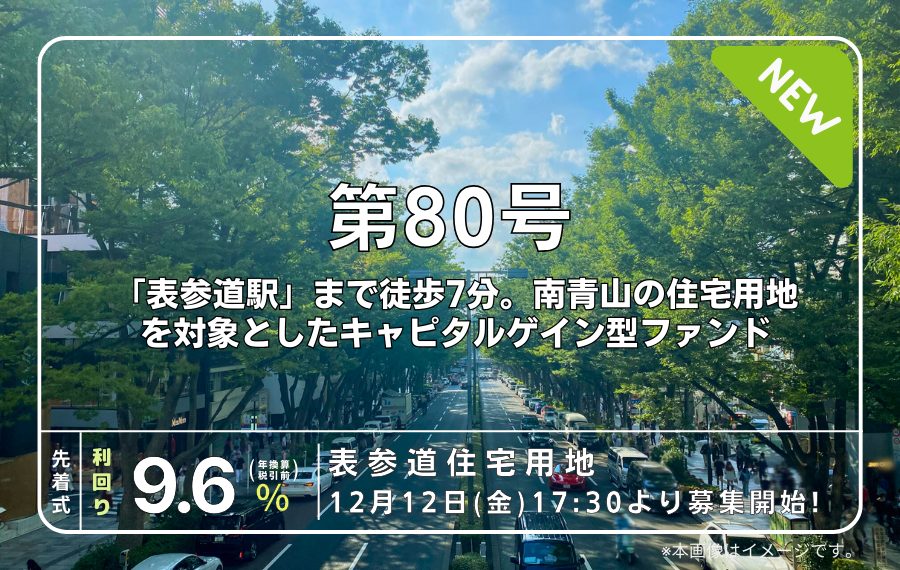 表参道に位置し、市場に出回ることが少ない住宅用地に投資できる貴重なファンドです。