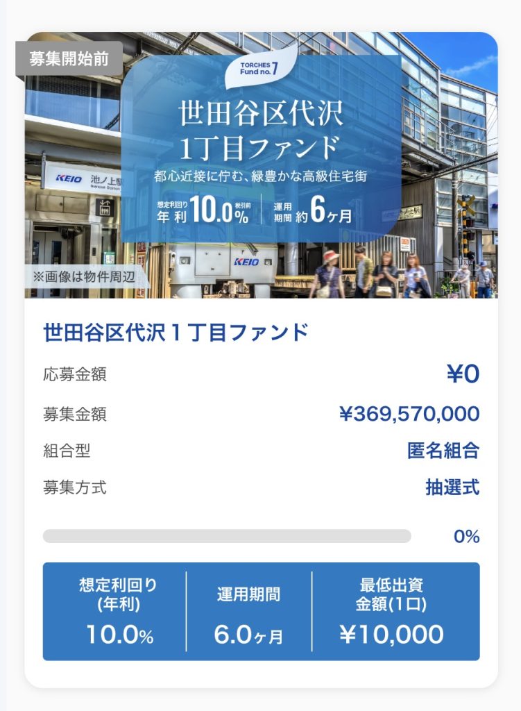 ちょうど12月15日から開始する予定の「世田谷区代沢ファンド」が1万円1口から投資ができるので、実質20%の利回りアップになります。