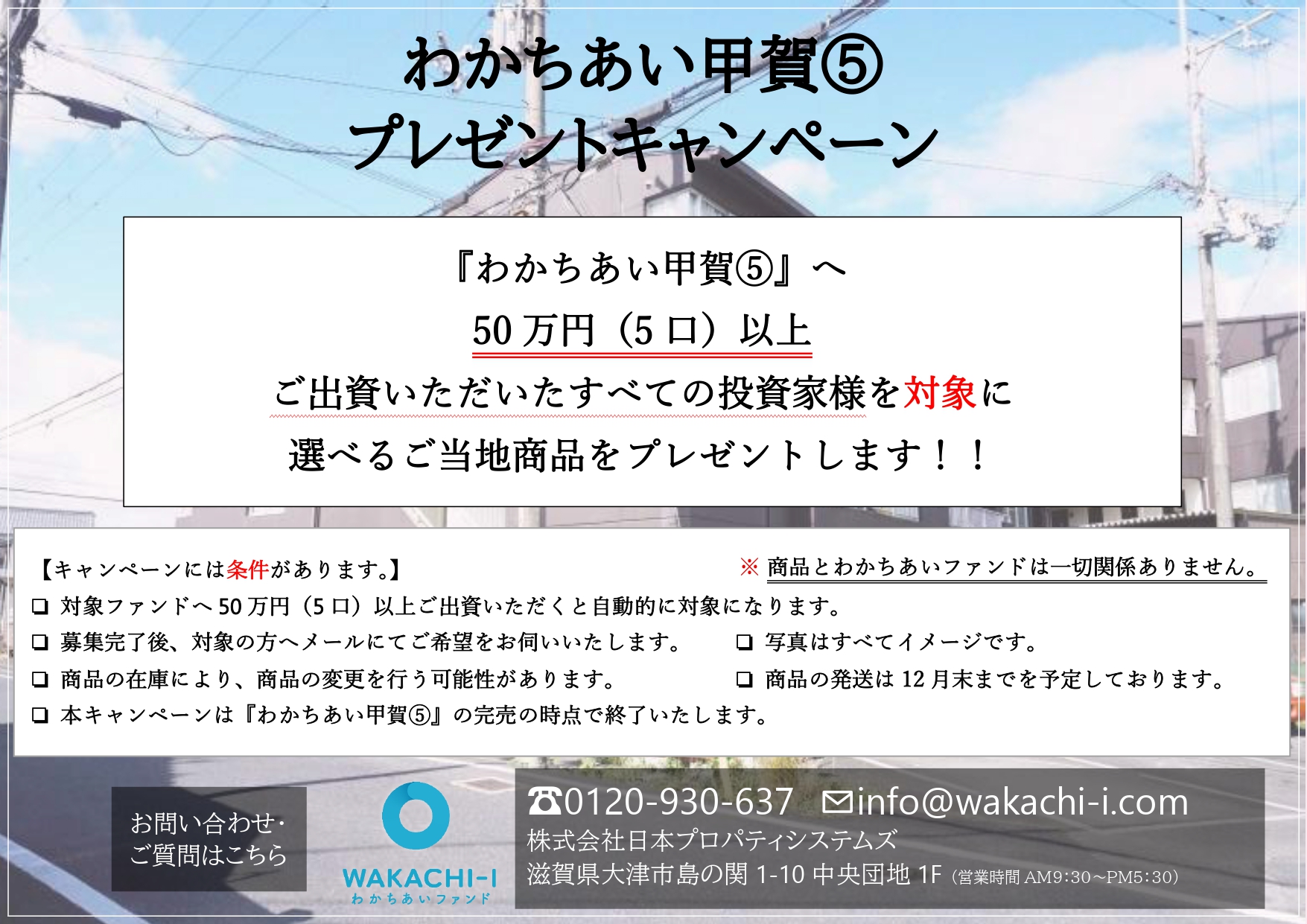| 適用条件 | 「わかちあい甲賀⑤」へ50万円以上出資する | ||||||