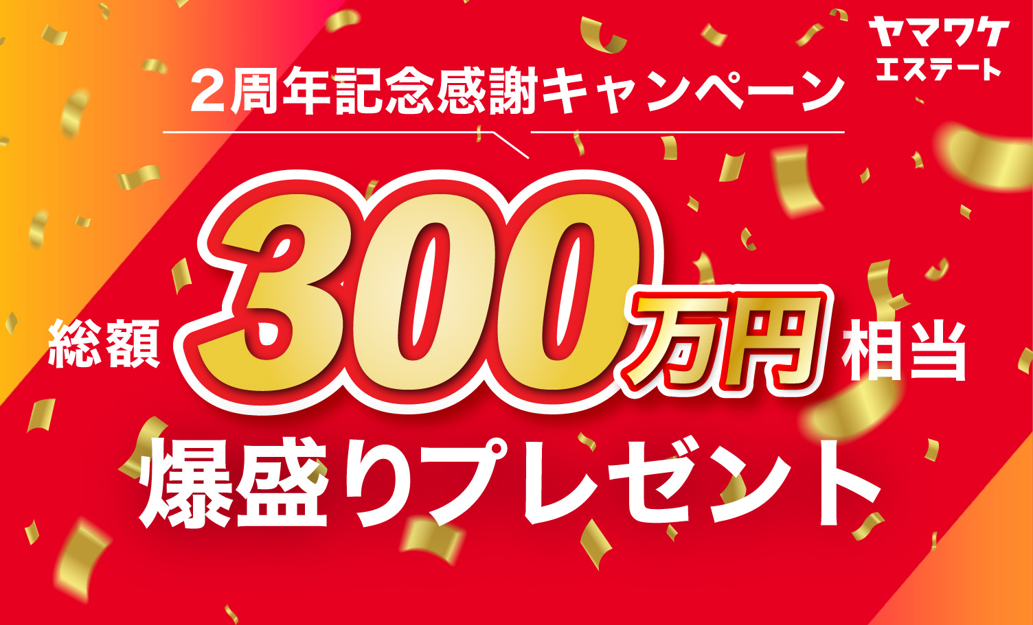 ヤマワケエステートでは、2025年9月現在、総額300万円爆盛りプレゼントキャンペーンを実施しています。